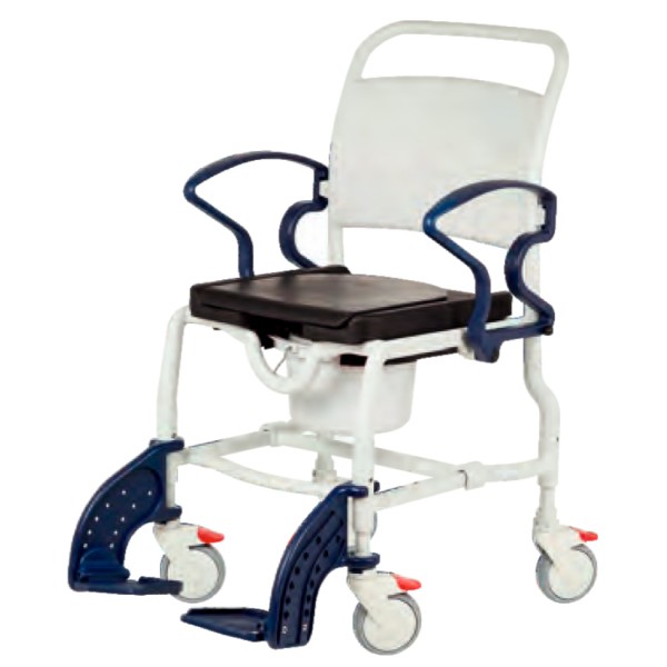 Dusch-Toilettenrollstuhl, höhenverstellbar bis 150 kg mit gepolsterter Sitzplatte